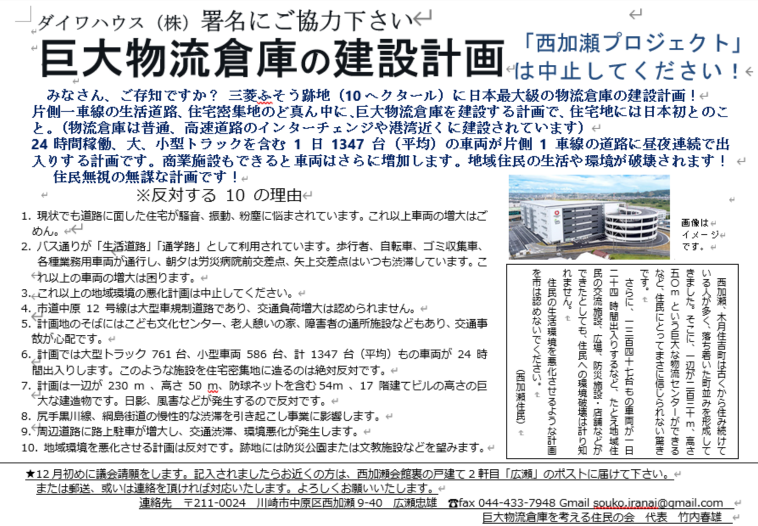 (仮称)「西加瀬プロジェクト」とは 〜計画に反対する10の理由〜